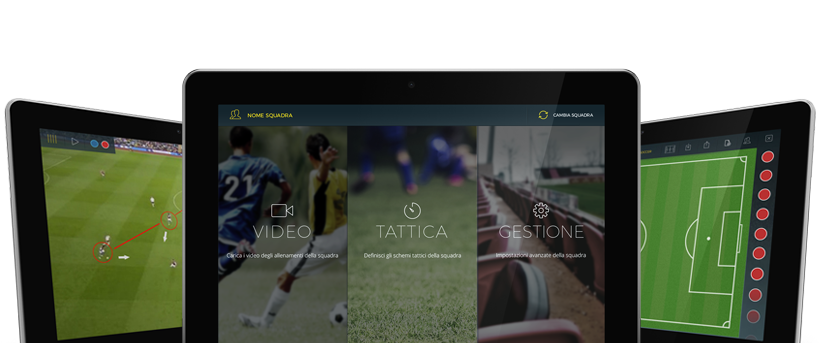 Creare diverse squadre. Salvataggio, caricamento e condivisione degli schemi tattici. Caricacamento dei video sia da libreria che da Dropbox.